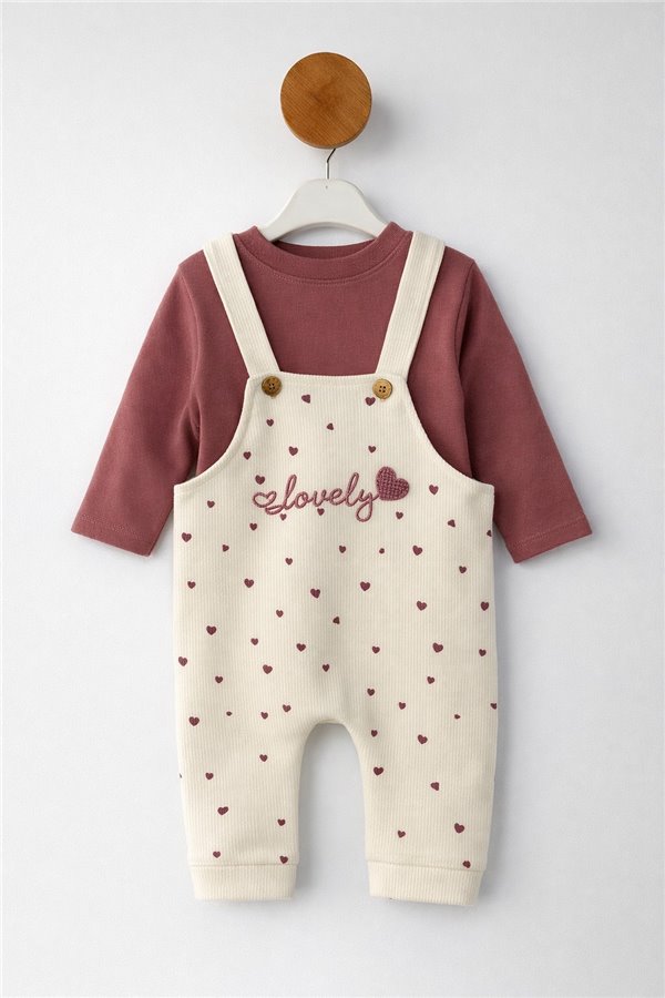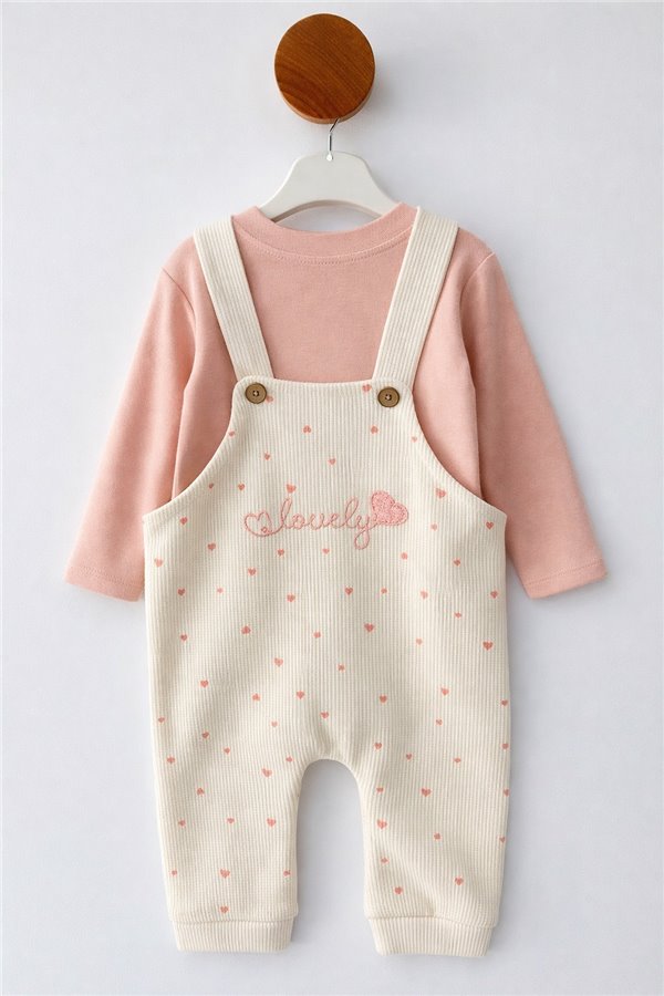 6-24 Ay Kalp Nakışlı Waffle Bahçıvan Tulum Pudra