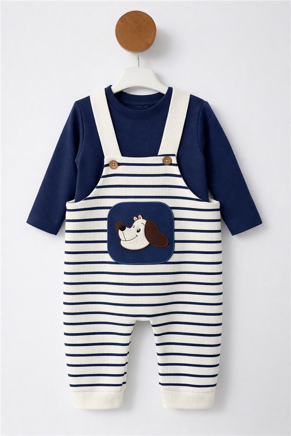 6-24 Ay Köpek Nakışlı Waffle Bahçıvan Tulum Lacivert