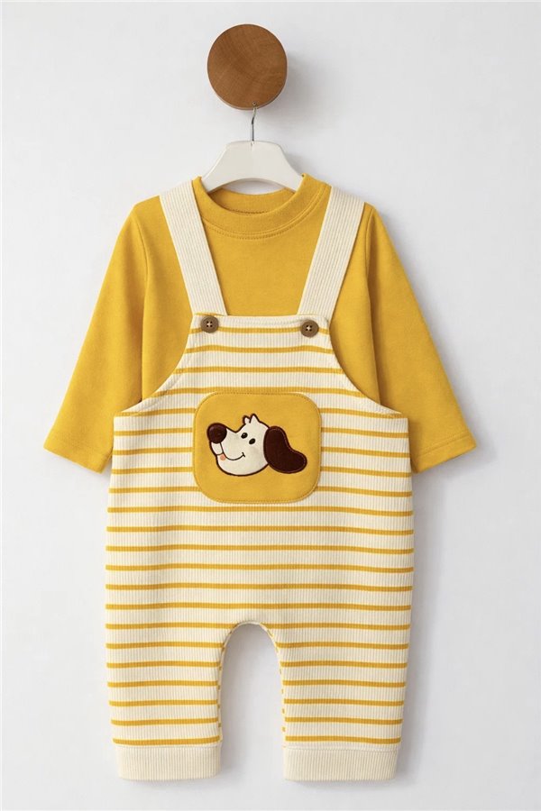 6-24 Ay Köpek Nakışlı Waffle Bahçıvan Tulum Sarı