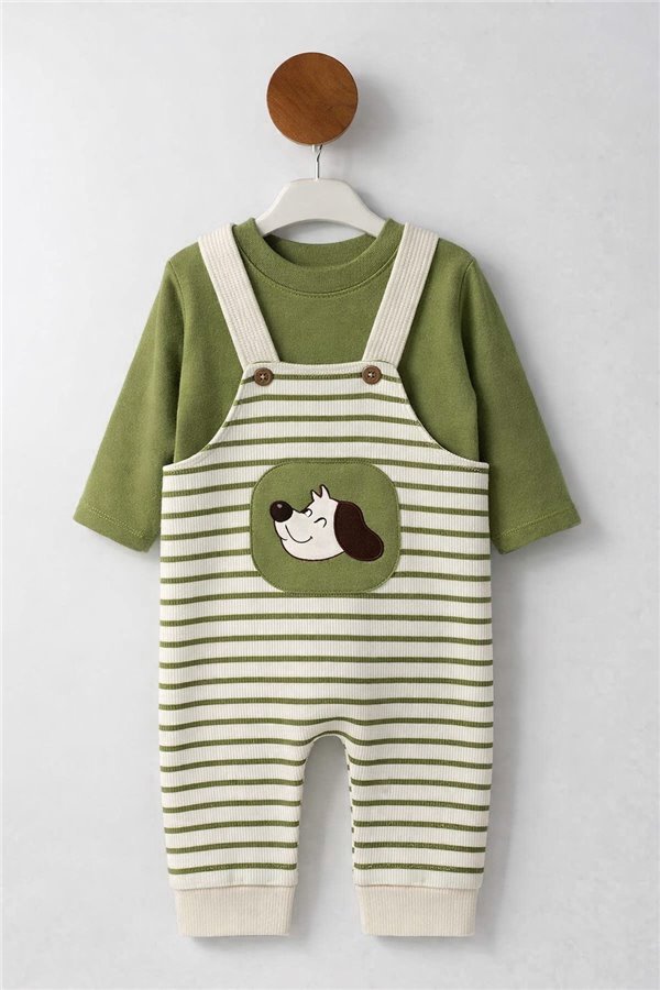 6-24 Ay Köpek Nakışlı Waffle Bahçıvan Tulum Yeşil
