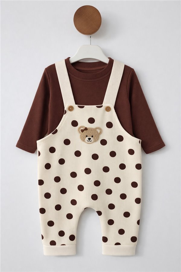 6-24 Ay Puanlı Ayı Nakışlı Waffle Bahçıvan Tulum Kahverengi