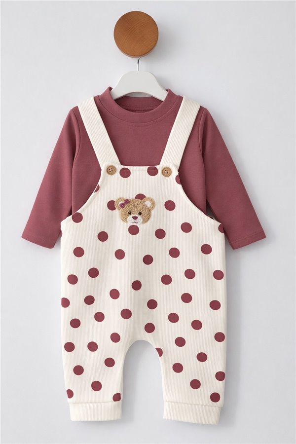 6-24 Ay Puanlı Ayı Nakışlı Waffle Bahçıvan Tulum Mürdüm