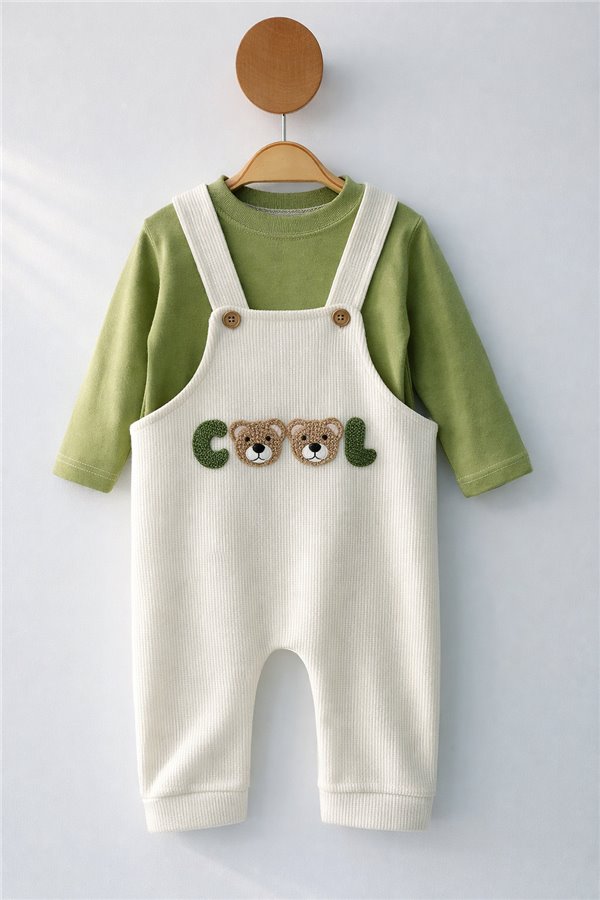6-24 Ay Aslan Nakışlı Waffle Bahçıvan Tulum Yeşil