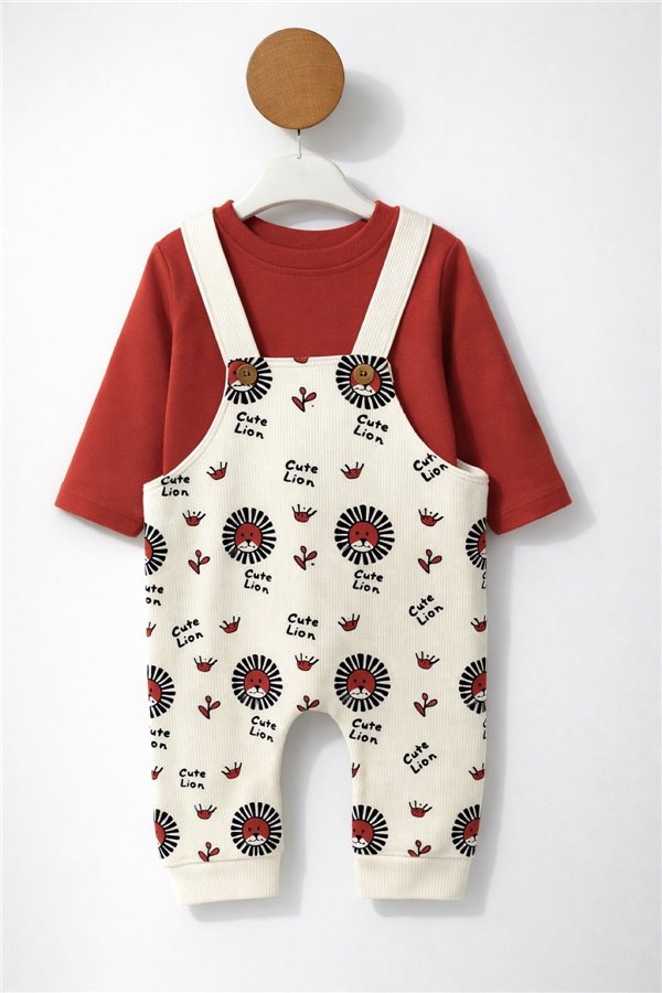 6-24 Ay Cute Lion Waffle Bahçıvan Tulum Kiremit