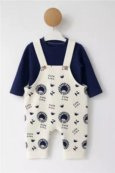 6-24 Ay Cute Lion Waffle Bahçıvan Tulum Lacivert
