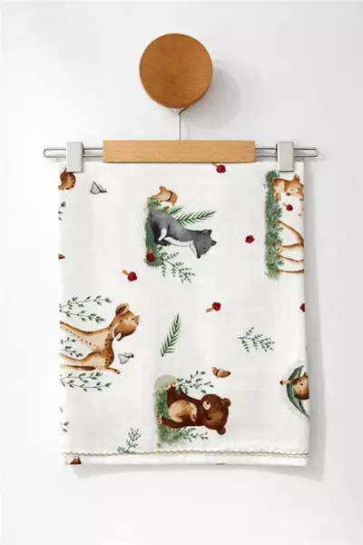 85X75 Cm Animal Desen Tek Kat Müslin Battaniye Yeşil