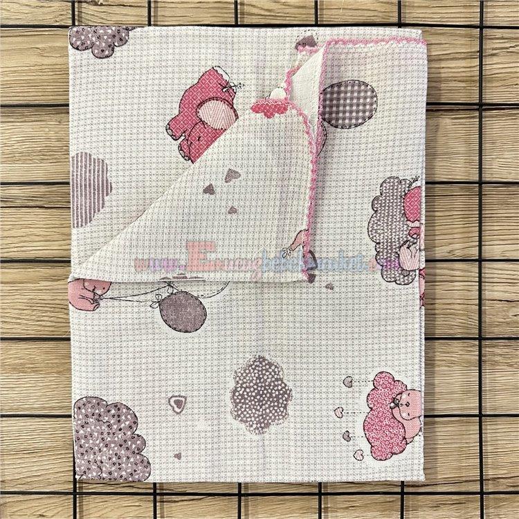 85X75 Cm Bulut Fil Balon Desen Tek Kat Müslin Battaniye Pembe