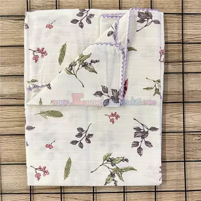85X75 Cm Çiçek Desen Tek Kat Müslin Battaniye Lila