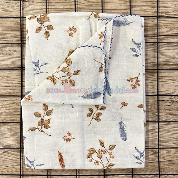 85X75 Cm Çiçek Desen Tek Kat Müslin Battaniye Mavi
