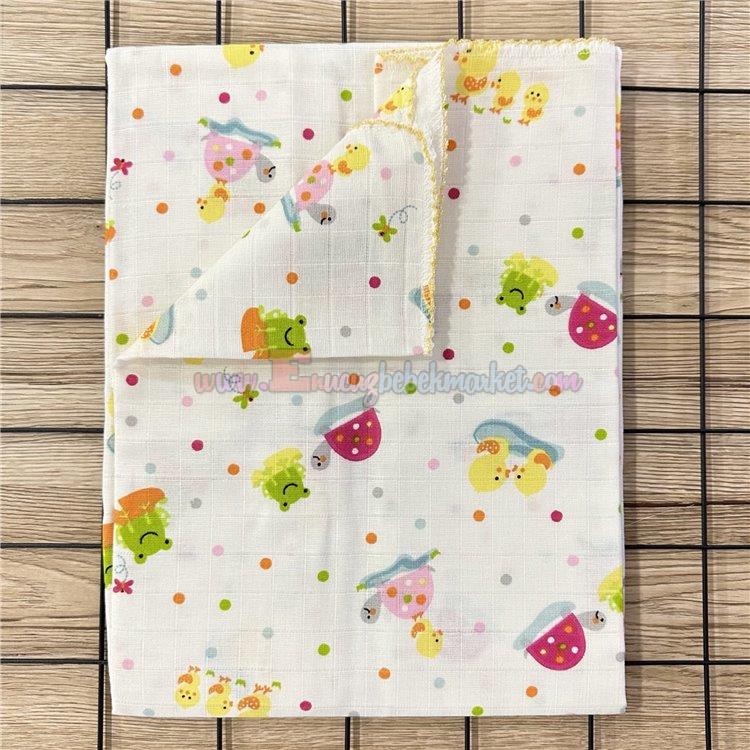 85X75 Cm Civciv Kaplumbağa Desen Tek Kat Müslin Battaniye Sarı
