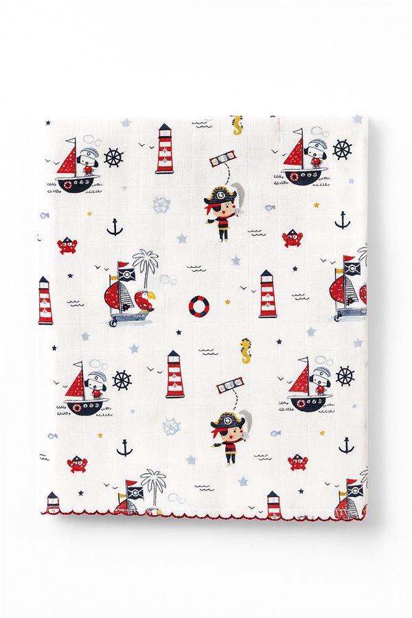 85X75 Cm Deniz Feneri Desen Tek Kat Müslin Battaniye Kırmızı