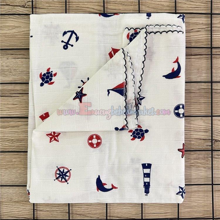 85X75 Cm Denizci Kaplumbağa Desen Tek Kat Müslin Battaniye Lacivert