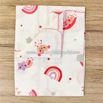 85X75 Cm Gök Kuşağı Desen Tek Kat Müslin Battaniye Pembe