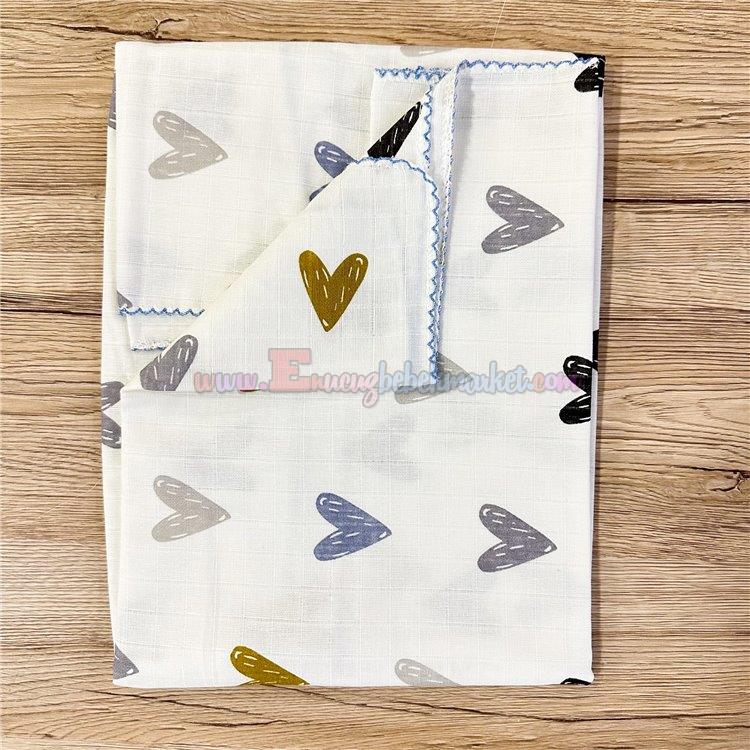 85X75 Cm Kalp Desen Tek Kat Müslin Battaniye Mavi