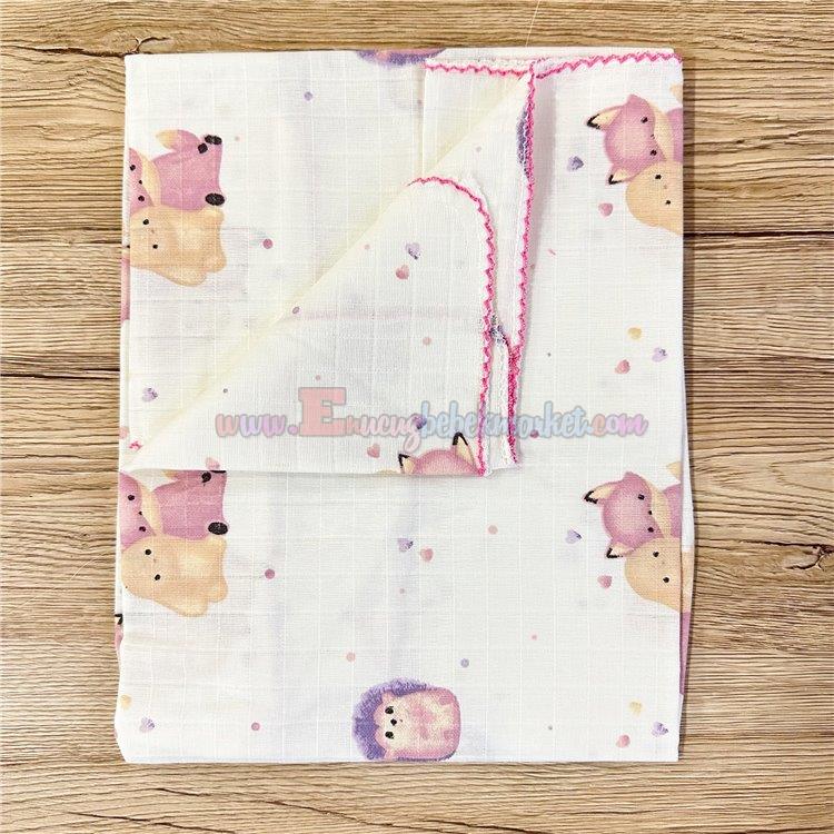85X75 Cm Kirpi Desen Tek Kat Müslin Battaniye Pembe