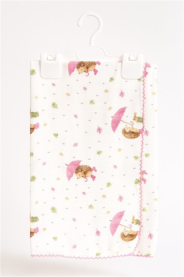 85X75 Cm Kirpi Desen Tek Kat Müslin Battaniye Pembe