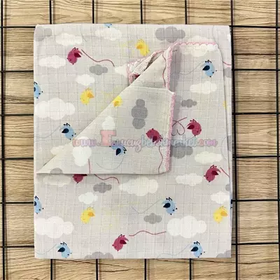 85X75 Cm Kuş Desen Tek Kat Müslin Battaniye Pembe Gri