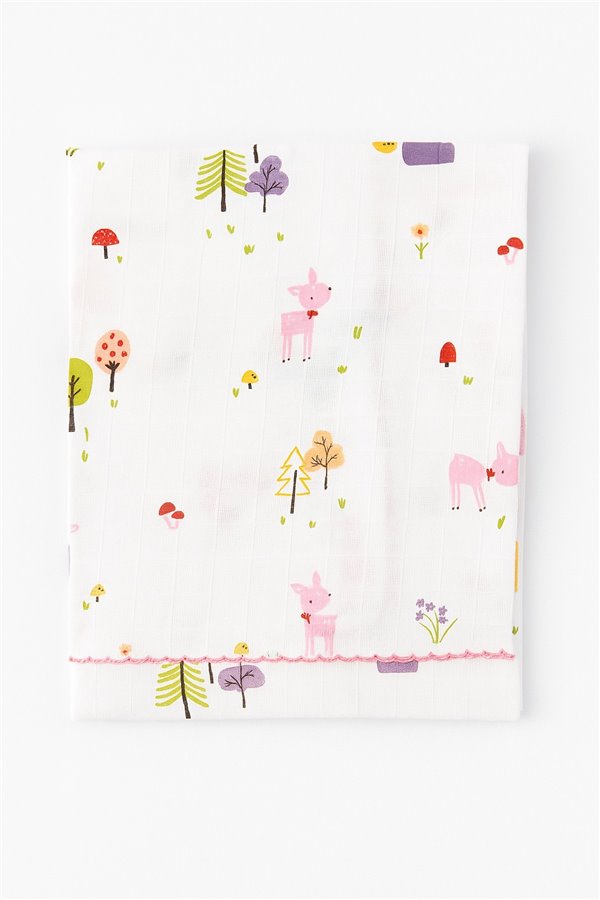85X75 Cm Orman Desen Tek Kat Müslin Battaniye Pembe
