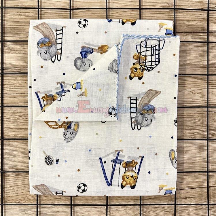 85X75 Cm Oyun Parkı Desen Tek Kat Müslin Battaniye Mavi