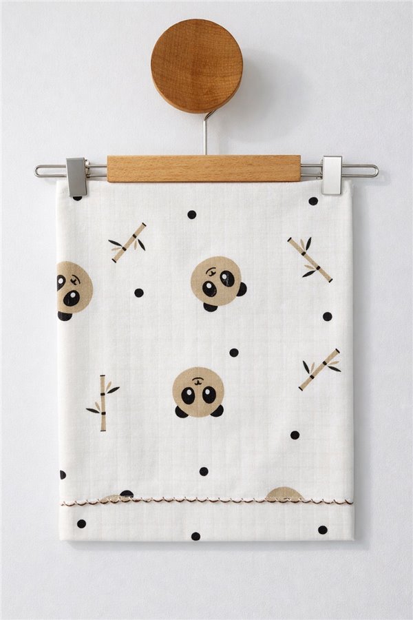 85X75 Cm Panda Desen Tek Kat Müslin Battaniye Bej