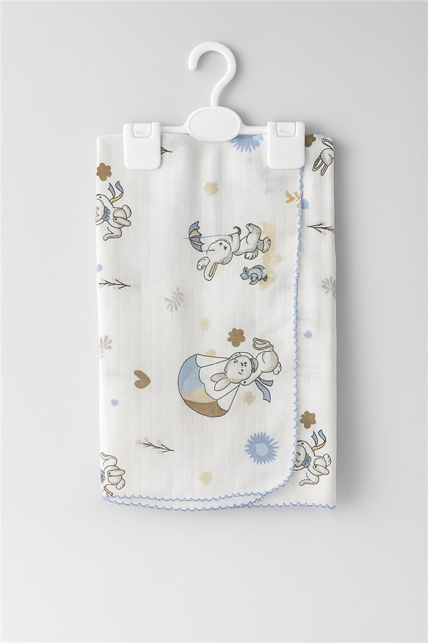 85X75 Cm Paraşütlü Tavşan Tek Kat Müslin Battaniye Mavi