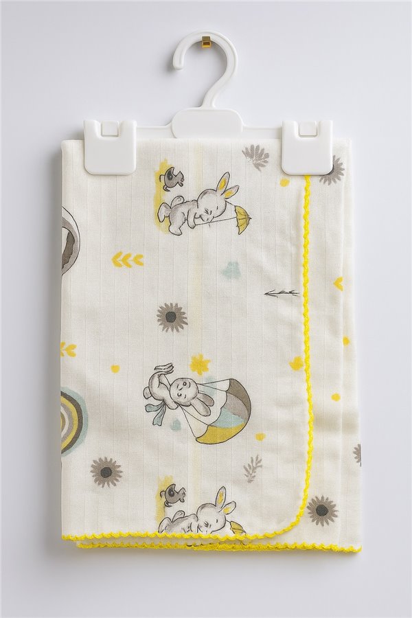 85X75 Cm Paraşütlü Tavşan Tek Kat Müslin Battaniye Sarı