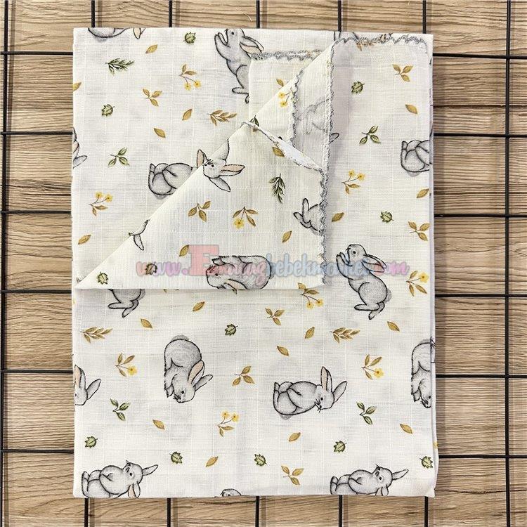 85X75 Cm Tavşan Desen Tek Kat Müslin Battaniye Gri