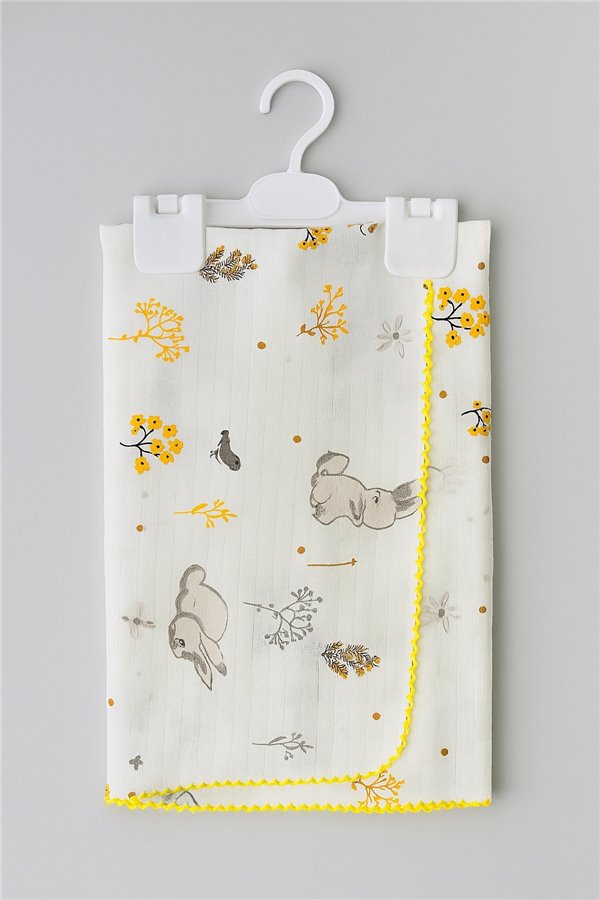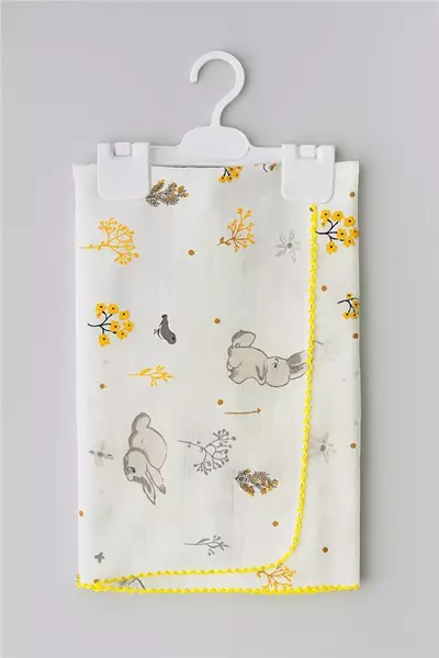 85X75 Cm Tavşan Desen Tek Kat Müslin Battaniye Sarı