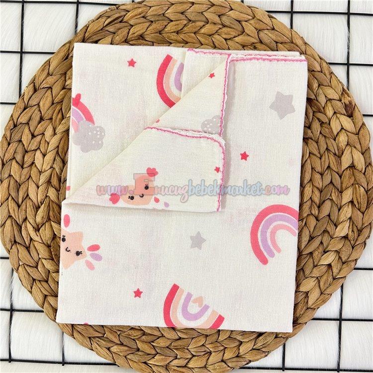 85X75 Cm Tek Kat Bebek Pazen Battaniye Gök Kuşağı Nar Çiçeği