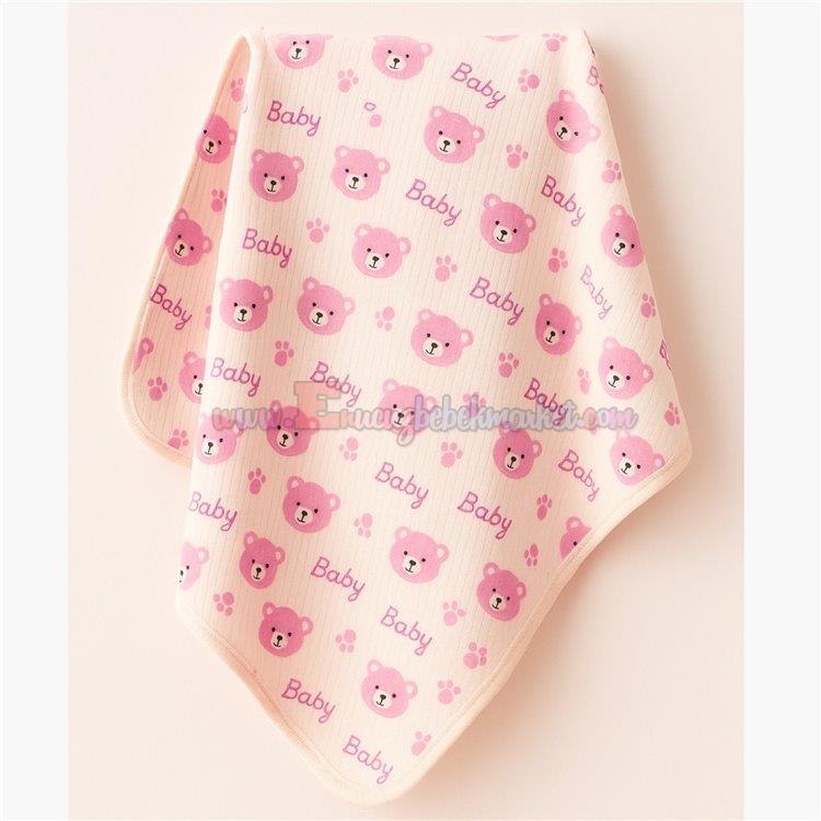 85X75 Cm Tek Katlı Penye Battaniye Ayıcıklı Baby Pembe