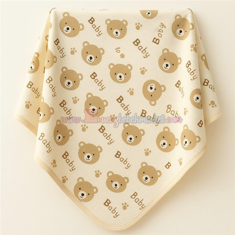 Minik ayıcık desenleriyle süslenmiş bu yumuşacık battaniye, %100 pamuk penye kumaştan üretilerek bebeklerin hassas cildine özel tasarlandı. Hafif yapısı sayesinde her mevsim kullanıma uygundur.