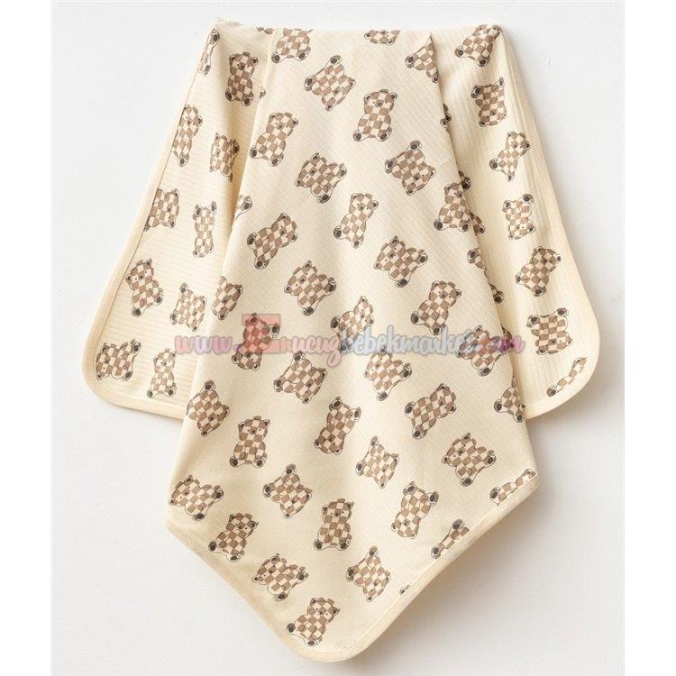 Ayıcık desenleriyle şirin bir tasarıma sahip bu bebek battaniyesi, %100 pamuk penye kumaştan üretilmiştir. Bebeğinizin hassas cildi için nefes alabilen ve hafif bir yapı sunar.