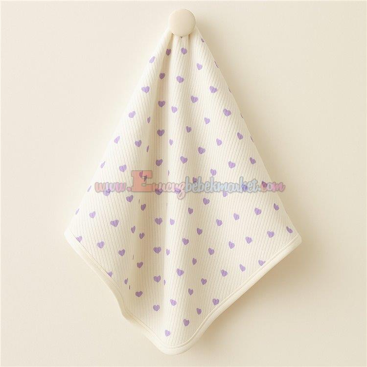 Lila kalp desenleriyle şirin bir tasarıma sahip bu bebek battaniyesi, %100 pamuk penye kumaştan üretilmiştir. Bebeğinizin hassas cildi için nefes alabilen ve hafif bir yapı sunar.