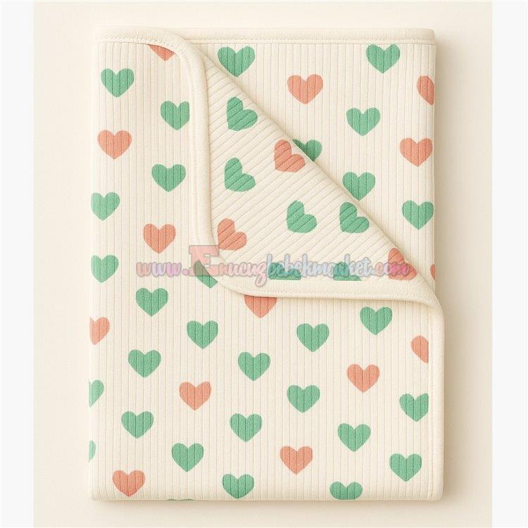 Kalp desenleriyle şirin bir tasarıma sahip bu bebek battaniyesi, %100 pamuk penye kumaştan üretilmiştir. Bebeğinizin hassas cildi için nefes alabilen ve hafif bir yapı sunar.