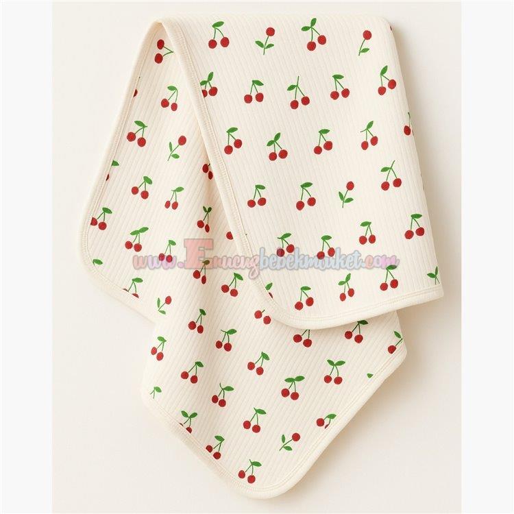 Kiraz desenleriyle şirin bir tasarıma sahip bu bebek battaniyesi, %100 pamuk penye kumaştan üretilmiştir. Bebeğinizin hassas cildi için nefes alabilen ve hafif bir yapı sunar.