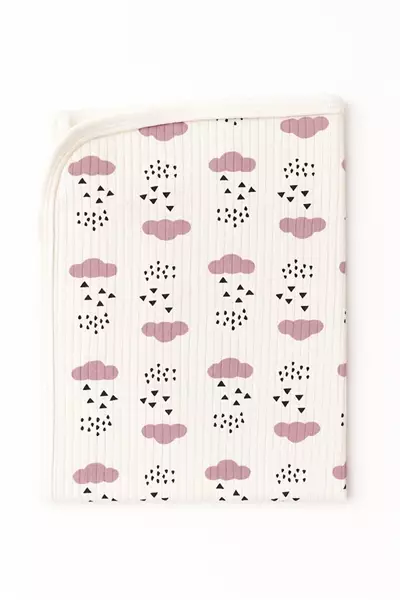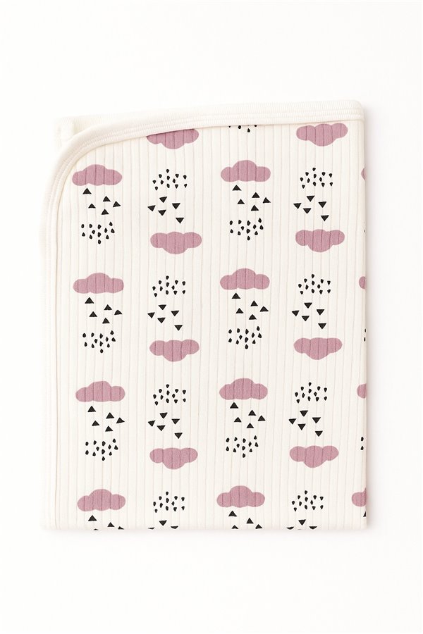 85X75 Cm Tek Katlı Penye Battaniye Yağmur Bulut Pembe