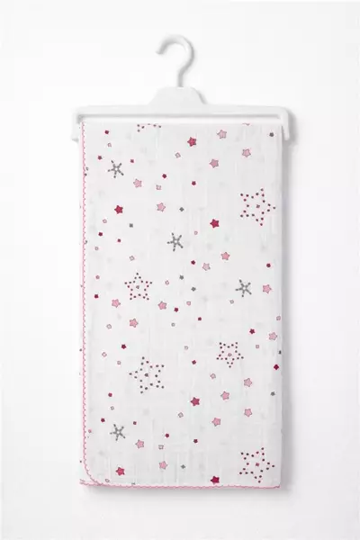 85X75 Cm Yıldız Desen Tek Kat Müslin Battaniye Pembe
