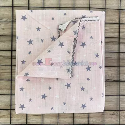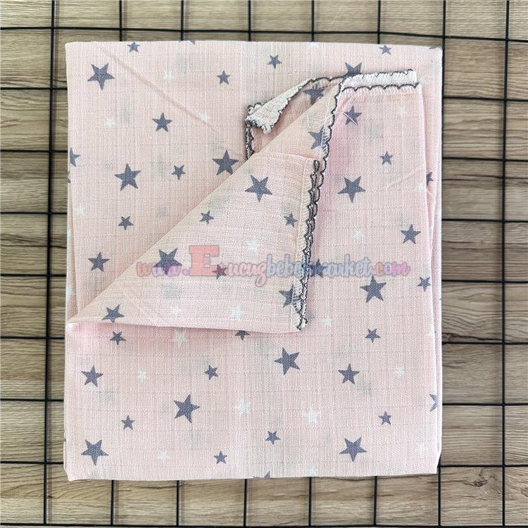 85X75 Cm Yıldız Desen Tek Kat Müslin Battaniye Pembe