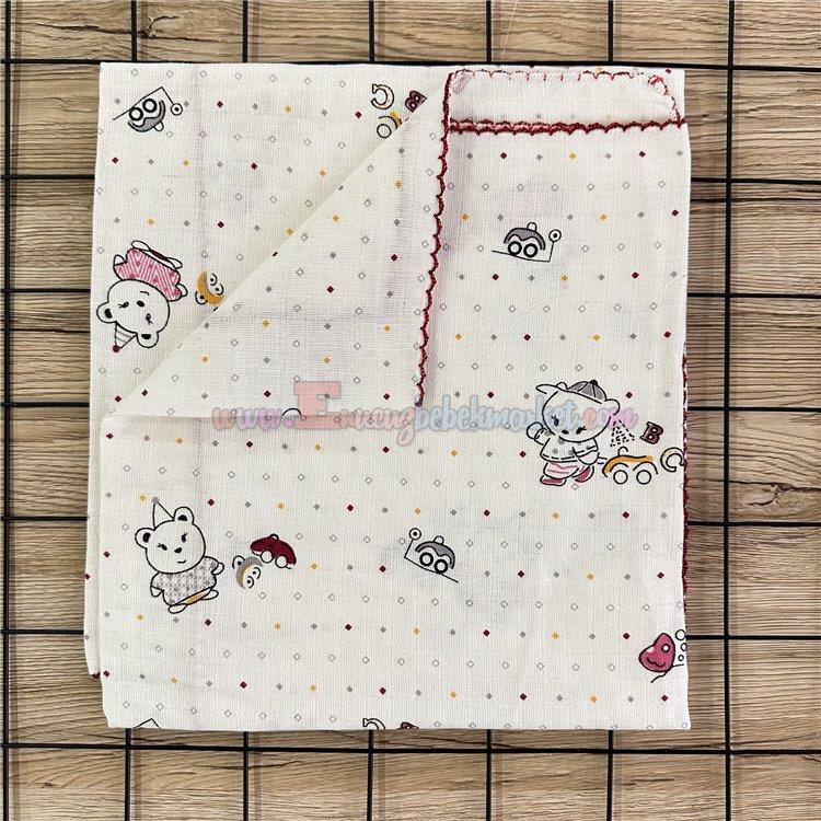 85X85 Cm Arabalı Ayıcık Desenli Müslin Battaniye Kırmızı