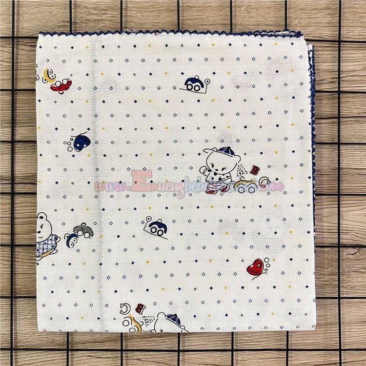 85X85 Cm Arabalı Ayıcık Desenli Müslin Battaniye Lacivert
