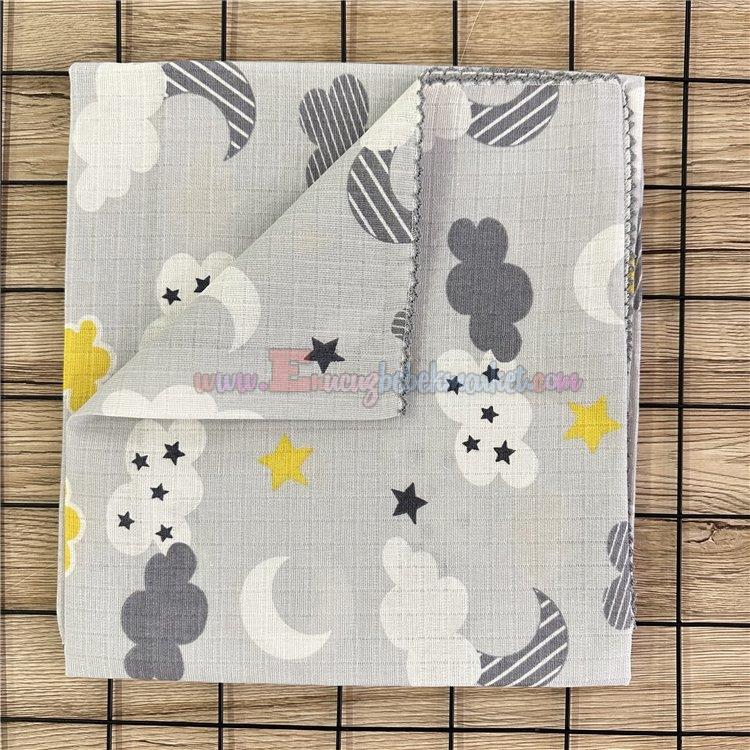 85X85 Cm Bulut Desenli Müslin Battaniye Gri