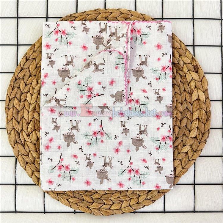 85X85 Cm Çiçekli Ceylan Desenli Müslin Battaniye Pembe