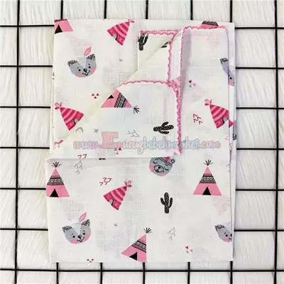 85X85 Cm Kamp Desenli Müslin Battaniye Pembe