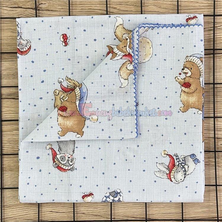 85X85 Cm Kartopu Ayıcık Desenli Müslin Battaniye Mavi