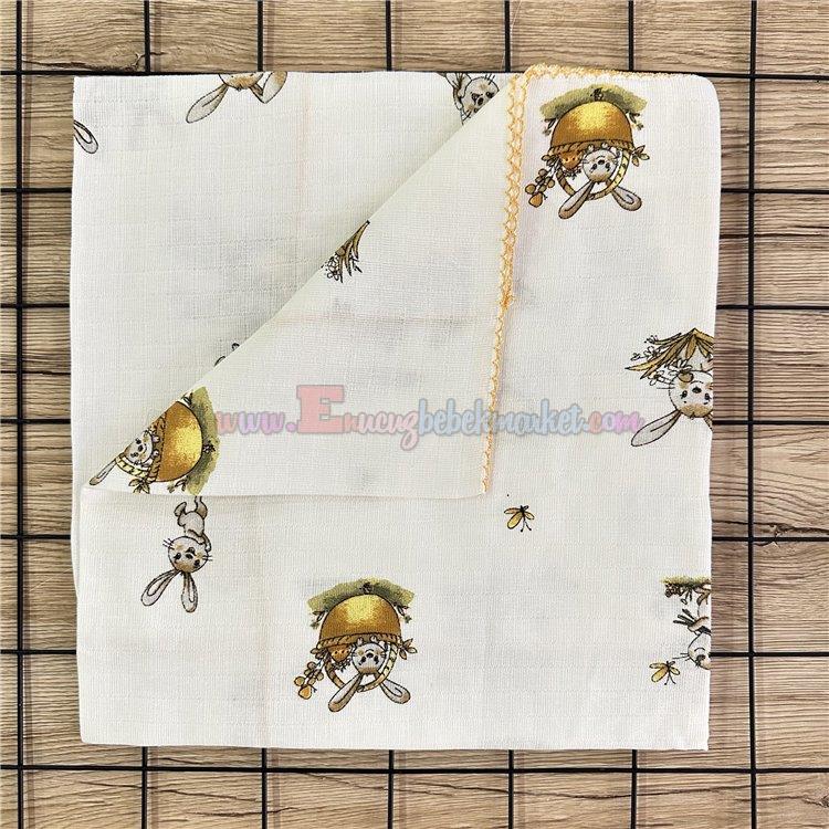 85X85 Cm Sepette Tavşan Desenli Müslin Battaniye Sarı