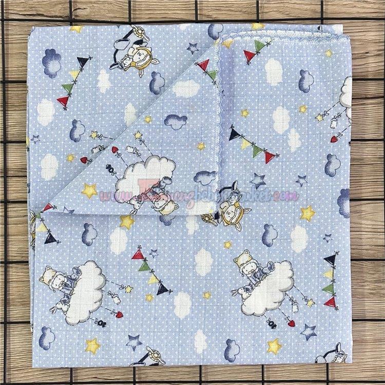 85X85 Cm Uçak ve Bulut Desenli Müslin Battaniye Mavi