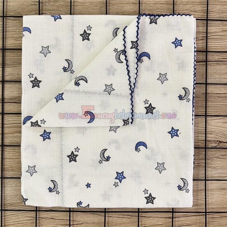 85X85 Cm Yıldız ve Ay Desenli Müslin Battaniye Lacivert