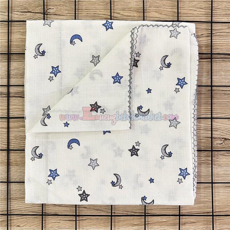 85X85 Cm Yıldız ve Ay Desenli Müslin Battaniye Mavi Gri