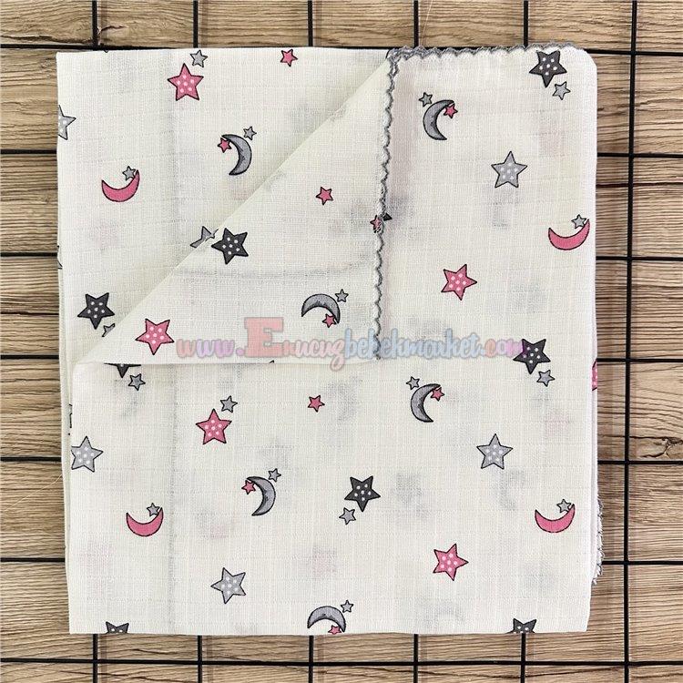85X85 Cm Yıldız ve Ay Desenli Müslin Battaniye Pembe Gri
