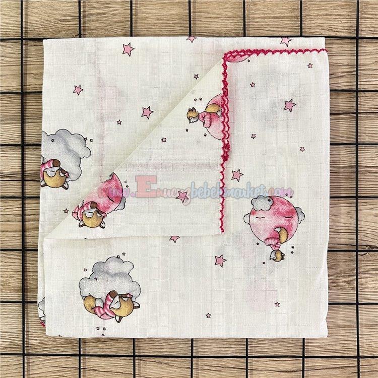 85X85 Cm Yıldız ve Tilki Desenli Müslin Battaniye Fuşya
